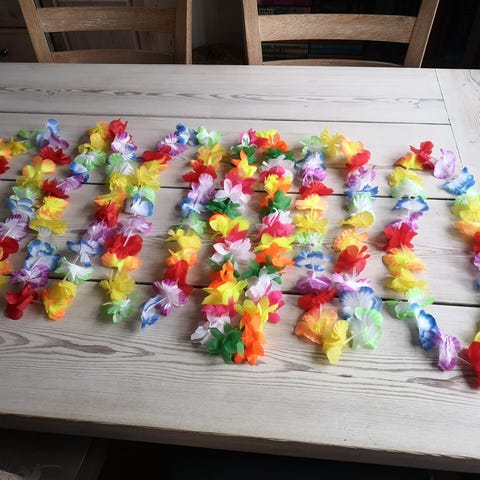 Udklædning. Halskæde til fest og farver. Hippie fest? (vedhæng er hamp blad)