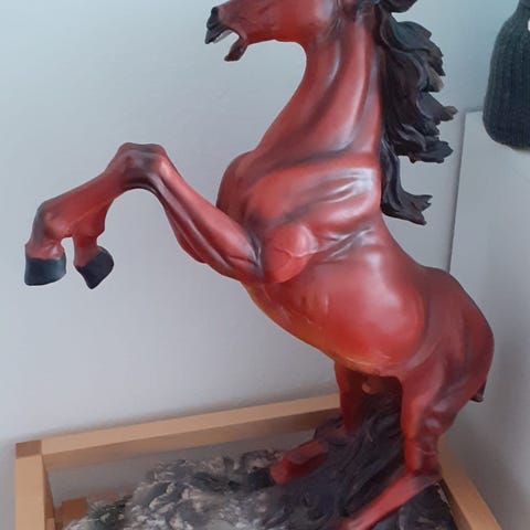Meget smuk hingst med en detaljegrad der er imponerende. Denne figur var 1. Præmie i stort travløb i slutningen af 1960 erne på Charlottenlund travbane.