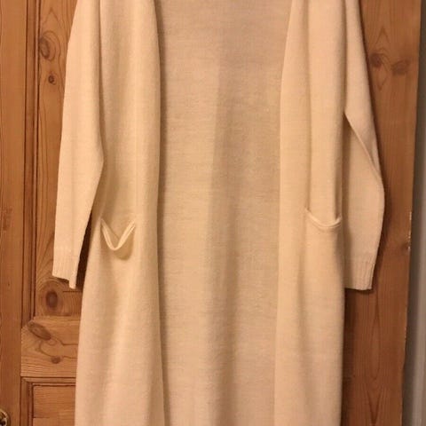 Acryl/nylon, God men brugt, Lang model med 2 lommer. Længde fra skulder og ned ca 1 meter