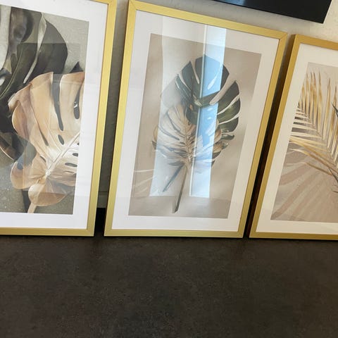 To guldrammer med tilhørende plakater fra desenio sælges.