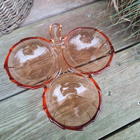 Fint glasfad med gule, røde, grønne og blå blade og bær.