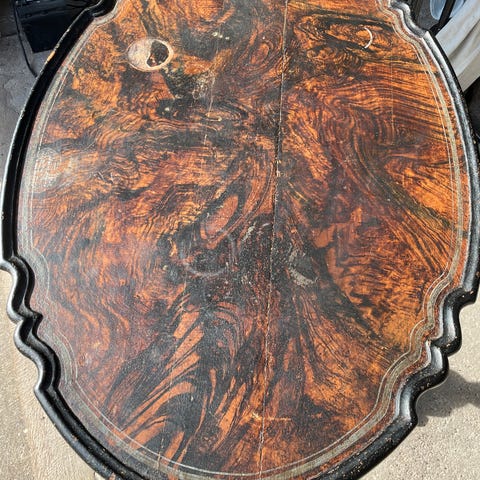 1800 tals ovalt Barok vippe bord i egetræ med fin patineret lys blå farve.