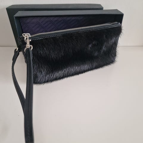 HELT NYT, KOPENHAGEN FUR - 10x15 cm, trykknaplås og justerbart kæde-rem. Mink pels på den ene side og ægte læder på den anden, 2 styk haves.