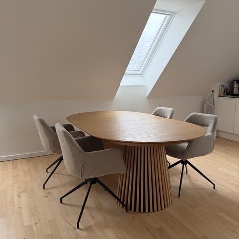 Nyt rundt spisebord med 4 nye stole.