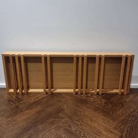 Reol, Hübch, b: 36 d: 36 h: 54, Stål reol/hylder. Sort. 2 dele. Har hjul på, men kan også hænges op hver for sig.