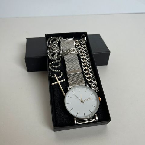 11 armbånd, 4 ure (skal alle have nyt batteri), 8 ringe, 1 halskæde med en (uægte) perle og en broche sælges.