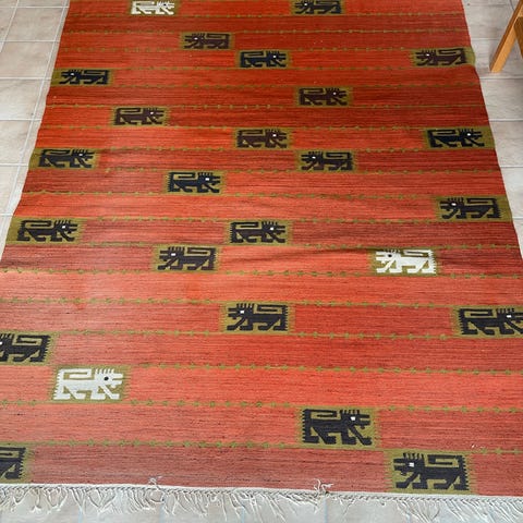 80% uld 20% bomuld, håndvævet. Ingen pletter eller slidtage. Købt i 2023 hos Garant