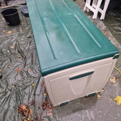 Hyndeboks med hjul i den ene ende Længde 115cm bredde 45cm højde 58cm 3stk absolut fast pris kan ikke forhandles pr stk kr 200 hvhgarage