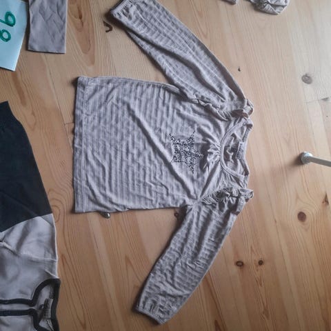 Rigtig god bluse i rosa og guld med et stjerne på, den er helt som ny endnu. Intet galt med den.