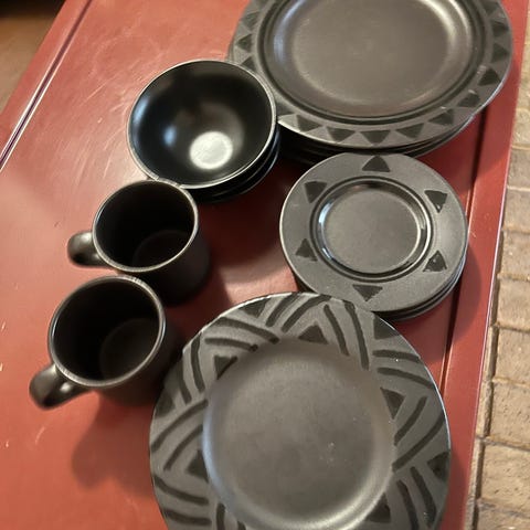 Inkluderet er dessert tallerkner, skåle og krus/kopper