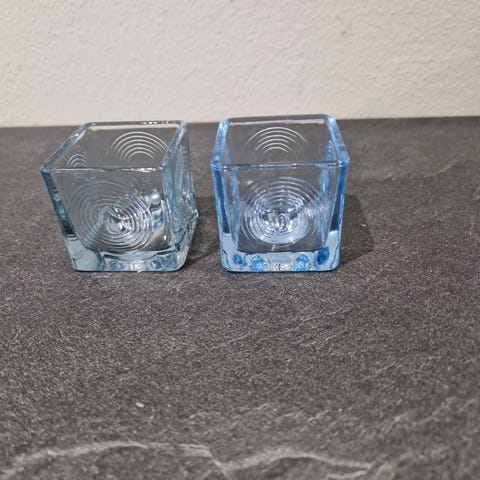 Hyggelampen fra Holmegaard. Designet af Per Lütken i 1958. Bunden er perfekt. Den blå overdel har et lille afslag i bunden, det der står nede i underdelen. Den har en lille ridse og er født med en luftbobbel. Prisen er sat derefter. H 26,5 og sendes forsvarligt.