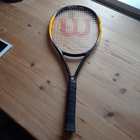Har en næsten ny Wilson blade 100L V8.0 tennis ketcher den var kun brugt i 1,5 måned, men har et par ridser i rammen fra intensiv spil