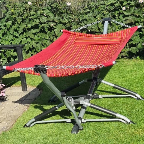 Denne sammenklappelige hængekøje er perfekt til afslapning i haven, på stranden eller på campingpladsen, så du kan nyde solen og vejret hvor som helst, når som helst. Stellet er lavet af træ, hvilket gør den særdeles robust og holdbar. Denne afslappende gyngestol kan hænges op på få sekunder, og den er også nem at folde sammen. Når den er foldet, kan du opbevare den eller tage den lette hængekøje med dig i den medfølgende bæretaske. Oplev den ultimative afslapning i denne sammenklappelige hængekøje på stranden, campingpladsen eller i din have!Vi har en overraskelse til dig! Brug rabatkoden dbaXL, når du betaler, og så får du 10% ekstra rabat. Denne rabatkode kan kun bruges til vidaXL-mærkede produkter, og den kan anvendes med et minimum købsbeløb på 750kr. God shoppingtur!