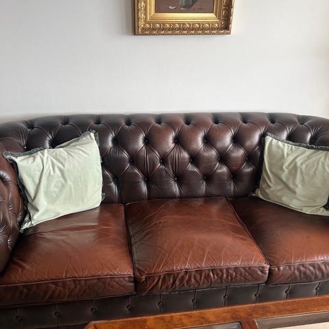 Denne Chesterfield sofa er den perfekte blanding af komfort og raffinement, og den er et glimrende supplement til ethvert hjem eller kontor. 3-personers sofaen med detaljer og flot buede arme føjer en luksuriøs stil til ethvert interiør. Det tykt polstrede sæde er yderst komfortabelt, mens den elegante struktur er robust og holdbar. Kunstlæderet i høj kvalitet er slidstærkt og let at rengøre.Vi har en overraskelse til dig! Brug rabatkoden dbaXL, når du betaler, og så får du 10% ekstra rabat. Denne rabatkode kan kun bruges til vidaXL-mærkede produkter, og den kan anvendes med et minimum købsbeløb på 750kr. God shoppingtur!