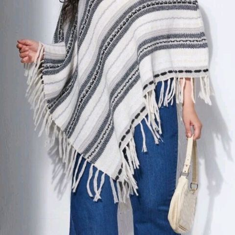 Meget elegant poncho med rævepels. Ponchoen er med hætte . Kun brugt et par gange. Kan passe af alle.