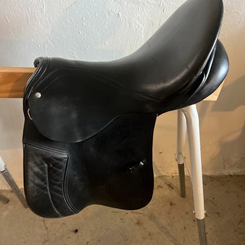 Sort kombisadel størrelse 17,5” af mærket Thorowgood Griffin. Sadlen er brugt, men er i fin stand.