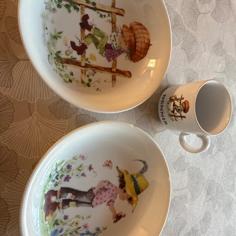 Prikket. Stel. To farvet. Krus er mørkere så det er rigtig smart sammen med den lysere lilla