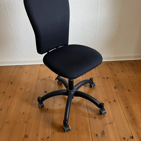 Ergonomisk stol med 5 hjul, højdeindstilling via gaspatron. Velholdt.
