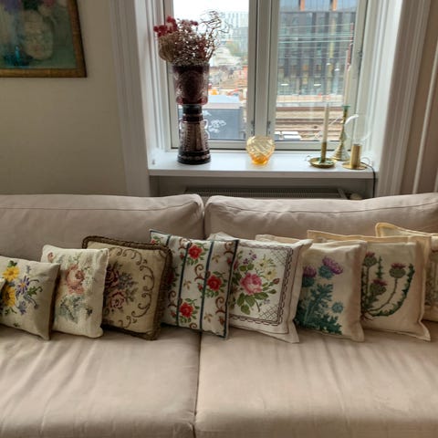 Det er puder der har været brugt - nogle gennem et langt liv- derfor smuk patina, og brugspatina.