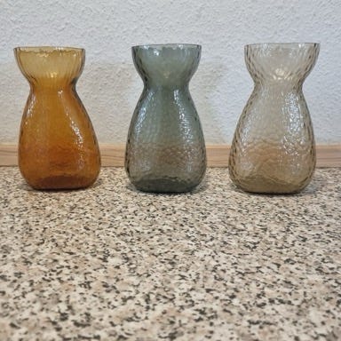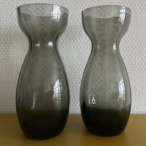 2 stk hyacint vaser med æske, røg farvet, 18 cm.