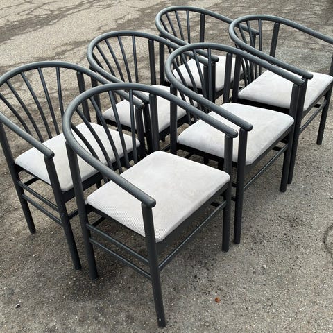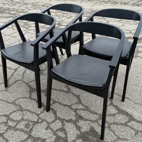 Jeg sælger fire super fine spisebordsstole i sortmalet egetræ. De er velholdt med mindre brugsspor.