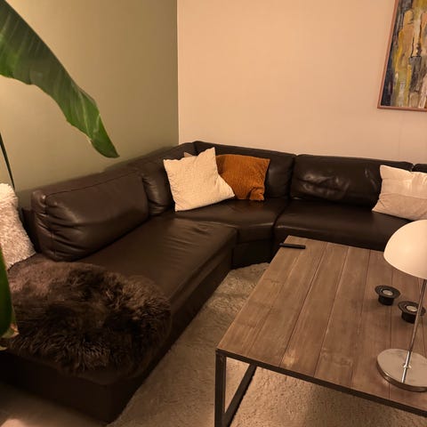 Denne velholdte hjørne læder sofa byder på en venstre vendt chaiselong og giver optimal komfort med