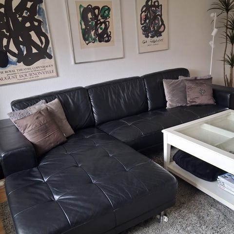 Fed grå læder sofa med Chaiselong