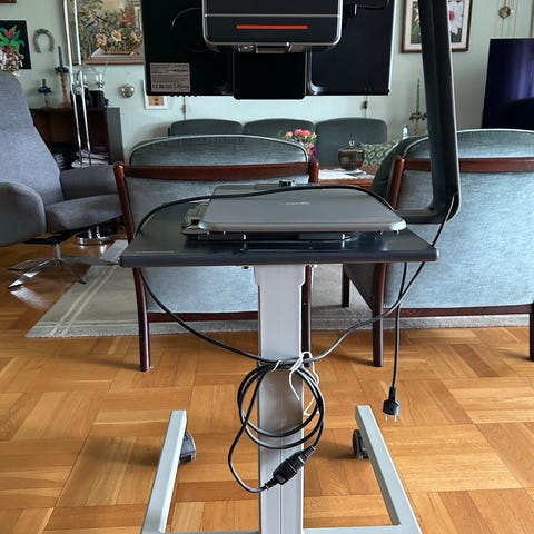 Scanner til meget svagseende. Læs din avis, hvad der står på pilleglasset, breve, aviser ovs. Som på billederne kan man forstørre tekst. Man kan læse et bogstav, ord af gange. Ved at man skubber den plade brevet, bladet, bogen ligger på til siderne og man zoomer ind fra 1-16. Den har virkelig hjulpet, personen som har haft den.