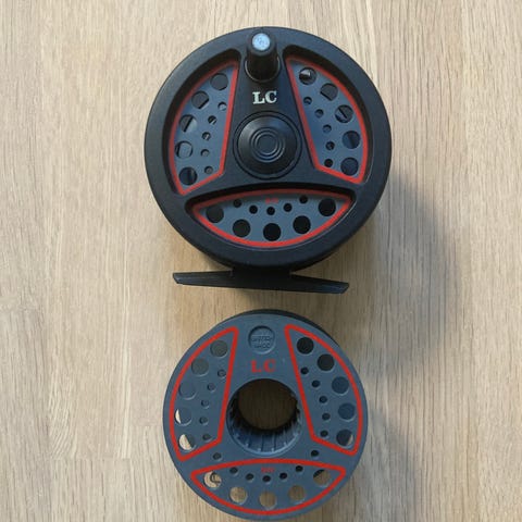 Ubrugt fluehjul. Leeda LC 80. Inkl. ekstraspole og line (ved ikke hvilken).