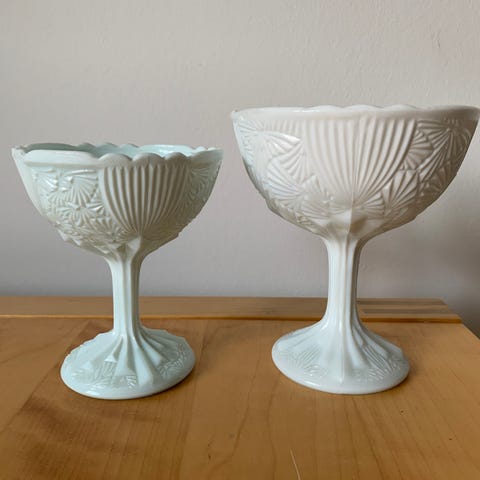 anvendelse: glasopsats, glasskål, dessertskål på sokkel, bægervase, presset glas, glasskulptur, asiet, pokal, portionsglas, lysestage, vase multifunktionel