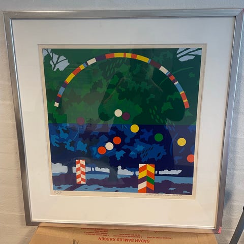 Grafisk tryk på kraftigt, uncoated papir af Bent Karl Jacobsen. Nummereret (119/300) og signeret af kunstneren (Bent Karl Jacobsen 94). Trykket måler 40x56 cm. Ramme (60x50 cm) i mat alu med enkelte brugsspor. Uklarhederne på billedet skyldes genskin i glasset.