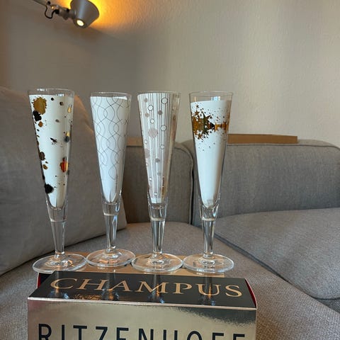 Har modtaget som gave men har ikke brug for dem. De er nye og kommer to stk pr. æske. Krystalgals der kan tåle opvaskemaskine. Der er fire æsker. Jeg vil helst sælge dem samlet