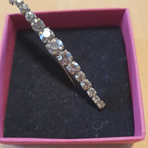Fin vintage broche med glassten, længde ca. 3 cm. - brochen fremstår i pæn brugt stand med intakt lås og der mangler ingen sten.