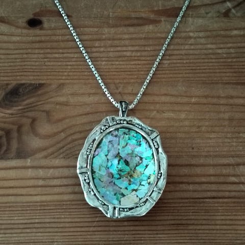 Flot retro halskæde i sterling sølv med indlagt turkis glas med guldnister. Længde 40 cm.