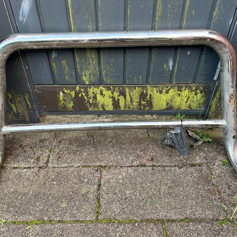 Front bar i Rustfri stål, designet til montering foran på køretøjet. Fremstillet i holdbart materiale med kromfinish, der giver et stilrent udseende. Har siddet på Crafter men passer på Man og Sprinter også. Beslag medfølger så den kan monteres på 15 min. Nypris 6475,- inkl m Giv mig et bud uden at være urealistisk