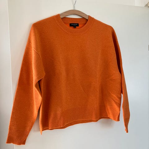 Lækker trøje fra Selected. Den er grå, med sort og lidt guld effekt på maven. Har lommer, trekvart ærmer. Fra ikke ryger og dyrefrit hjem.