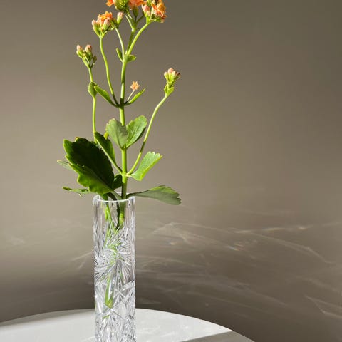 Smuk, høj, Bohemisk krystalvase, i kongeblå.
