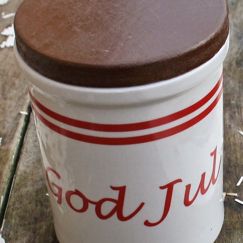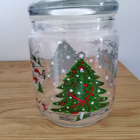 Krukke, Julekrukke, aldrig brugt. Selve krukken er ca 9 cm og 16 cm til julemandens top.
