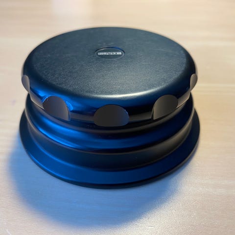 Kommer med både 4mm filt og 3mm kork skive der kan monteres på bunden der vil være ned i mod vinylen.