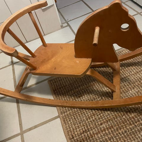Flot sort gyngehest i solidt træ – klar til mange timers sjov for de små.