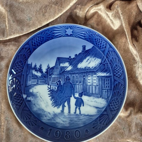 jule gaveide. ældre indretning børne indretning platte vægpynt Kgl. juleplatte julestemning, waiting for Christmas