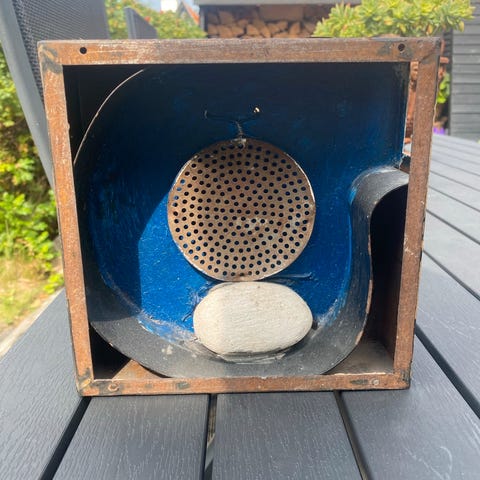 Assemblage / montage / Collage, Hans Christian Ege, b: 46 h: 50, Assemblage af træ og metal.