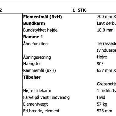 Enkelt højre/ind: 87,5x214,5 cm 2500kr/stk.