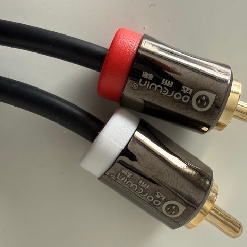 2x RCA (phono) i den ene ende, 1 x minijack i den anden (stereokabel).