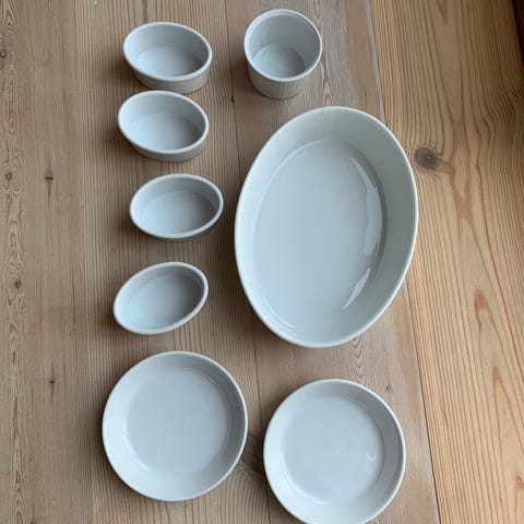 Pillivuyt Asietter, 6 stk. nye, læ. 14 cm br. 7,5 cm, sælges pr. stk.