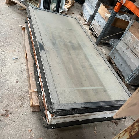 Vinduer som har været kortvarigt monteret i erhvervsbygning, velegnet til udetue e.l.