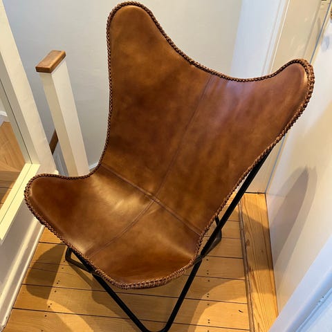 Aldrig siddet i eller brugt. Kun stået som pynt i et hjørne i værelse