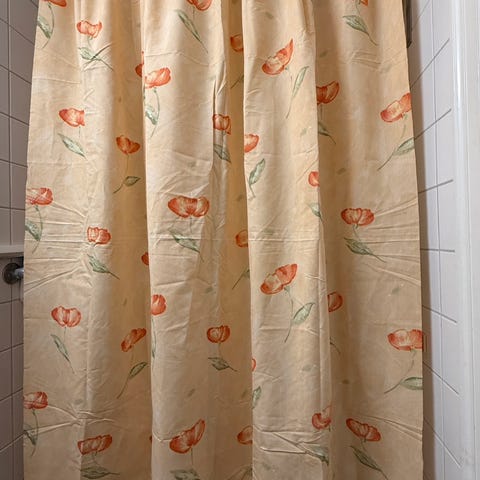 Der er lidt afblegning i bunden af forhænget som vist på billedet.