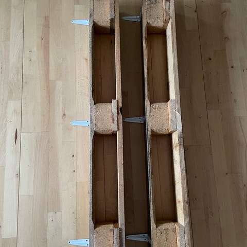Reol / hylde fremstillet af pallerammer.