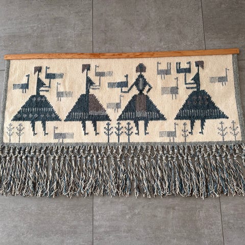 Fantastisk smukt retro kelim vægtæppe med almuemønster.